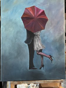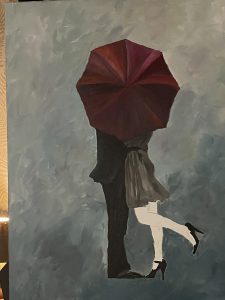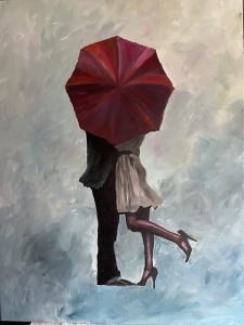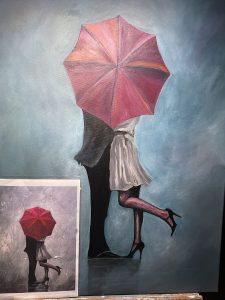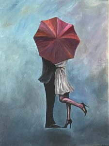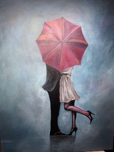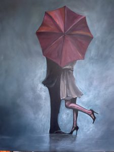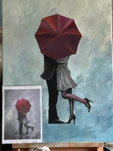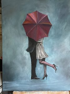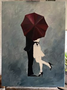 Achter moeders paraplu heb ik hem genoemd, mijn eerste les was een vrije keus en we zouden er drie lessen over doen maar het liep anders ik ben namelijk later ingestapt!