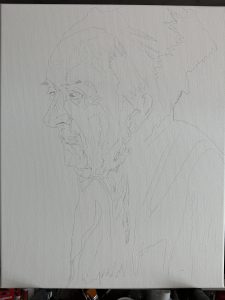 Ik heb op 13 juli 2023 de tekening op het doek gezet en ik ben inmiddels begonnen en de eerste laag zit erop, ben er wel achter gekomen dat het moeilijk is om na te schilderen en dat er heel veel uren in gaan zitten maar goed ik heb A gezegd en dus gaan we ook voor B