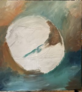 Dit word voor de verandering weer een keer een groot doek van 80 Cm x 80 Cm, er komt een een cirkel op, niet te mooi de binnenkant van de cirkel is een andere wereld dan de wereld buiten de cirkel maar er is een soort pad dat ze toch en beetje verbind.