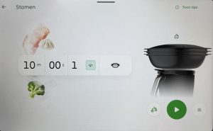 Je kan stomen IN de mengbeker met het kookmandje of OP de mengbeker met de Varoma schalen.