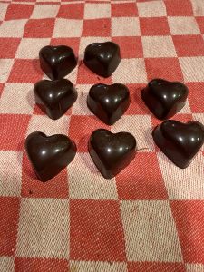 Ik heb de chocolade getemperd in de Thermomix en dat ging goed maar dan moet je het wel meteen verwerken, volgende stap is om te kijken hoe ik de chocolade warm, kan houden.