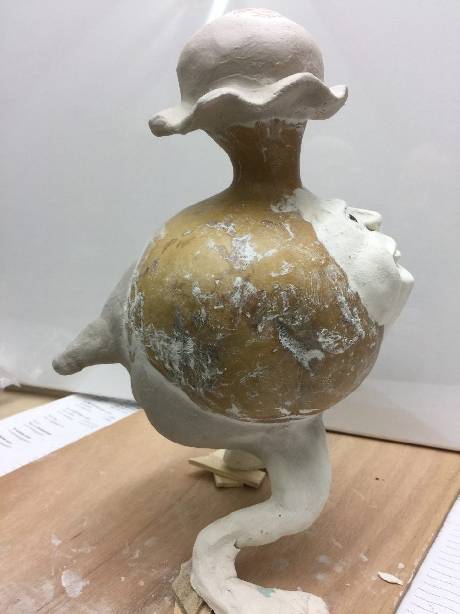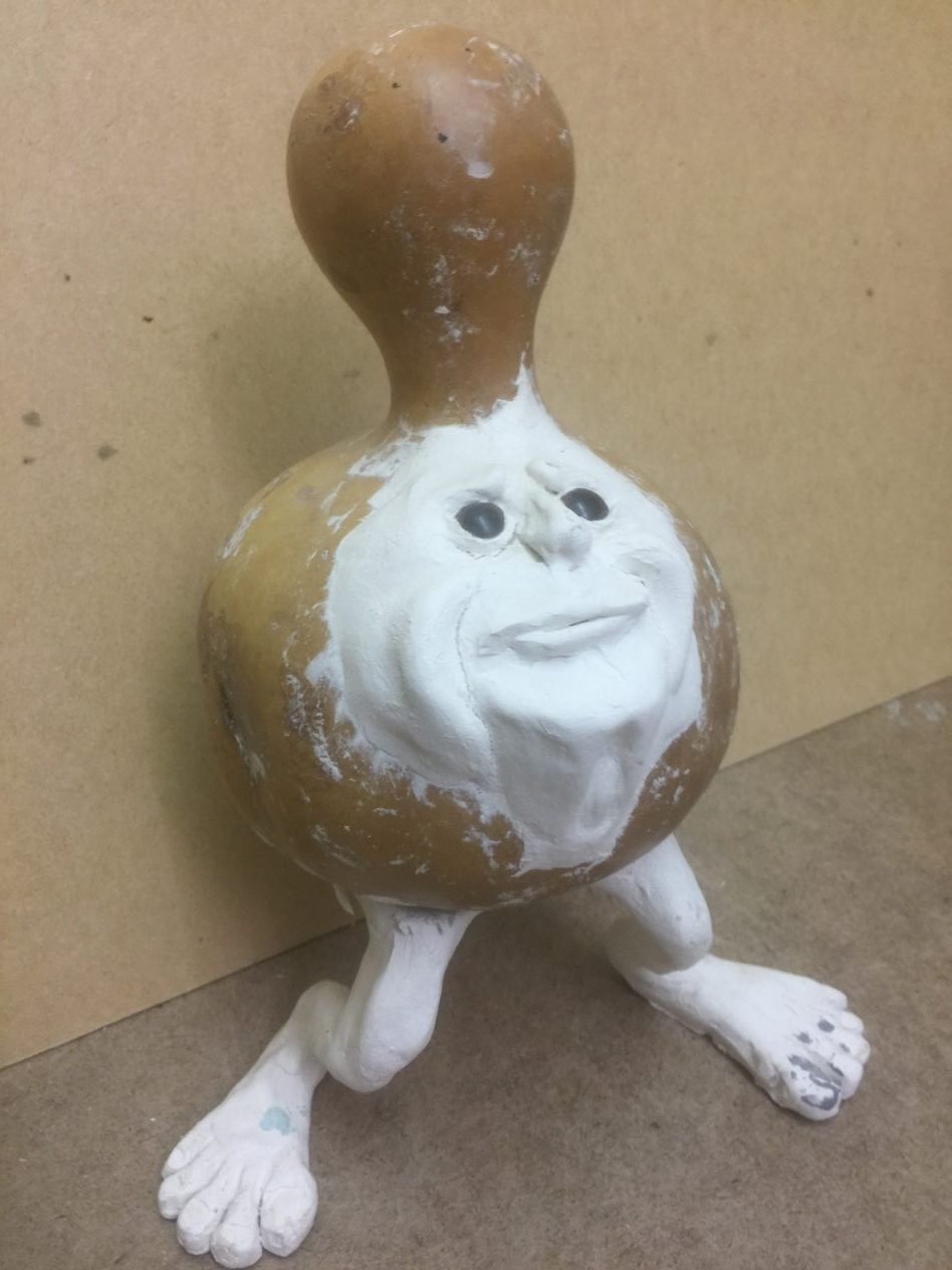 Ik vind het werken met bijvoorbeeld klei heerlijk om te doen het ontspant enorm ik ben nu bezig met ene kalebas manneke, hier onder zie je door middel van foto’s hoe het manneke langzaam maar zeker ontstaat.