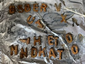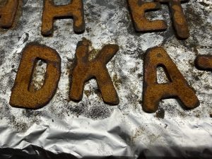 Langzaam maar zeker komen we verder, de houten letters zijn van een laagje roest voorzien en er zit nu meer lood op, hier en daar moet ik het nog vastzetten, ik ben nu bezig met het haar!