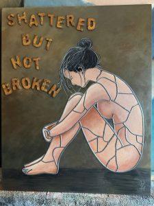 Dit nieuwe project is iets wat ik eigenlijk nooit zou schilderen maar in dit geval dus wel, “shattered but not broken“, vertaald betekend dat “verbrijzeld maar niet gebroken“.